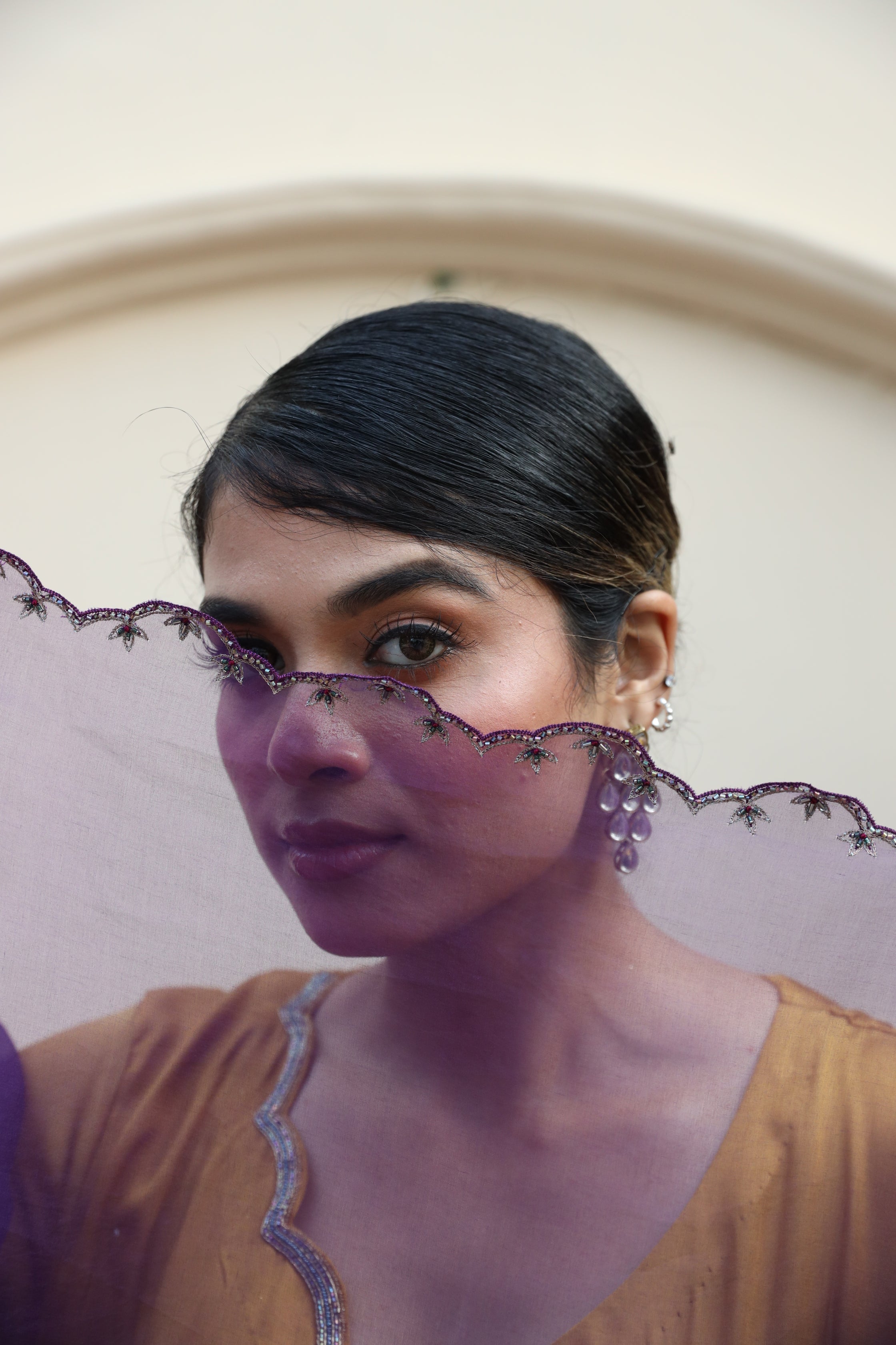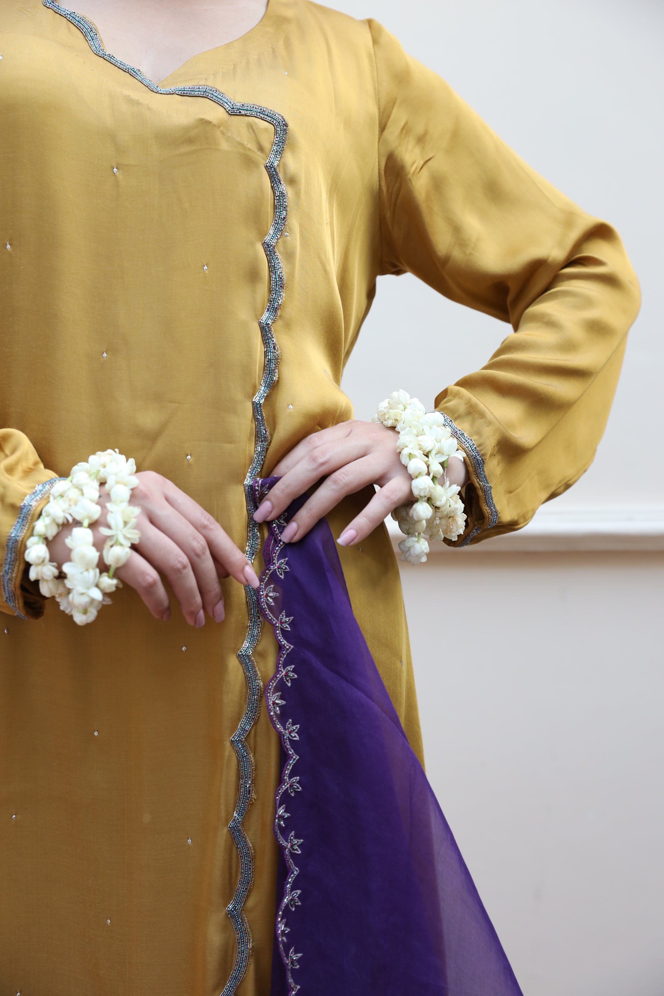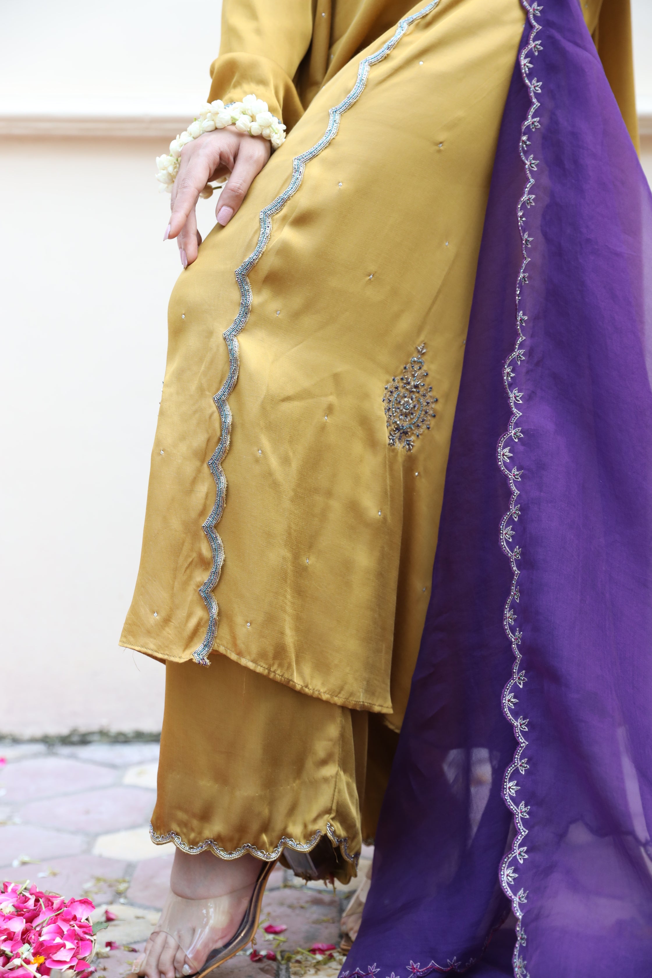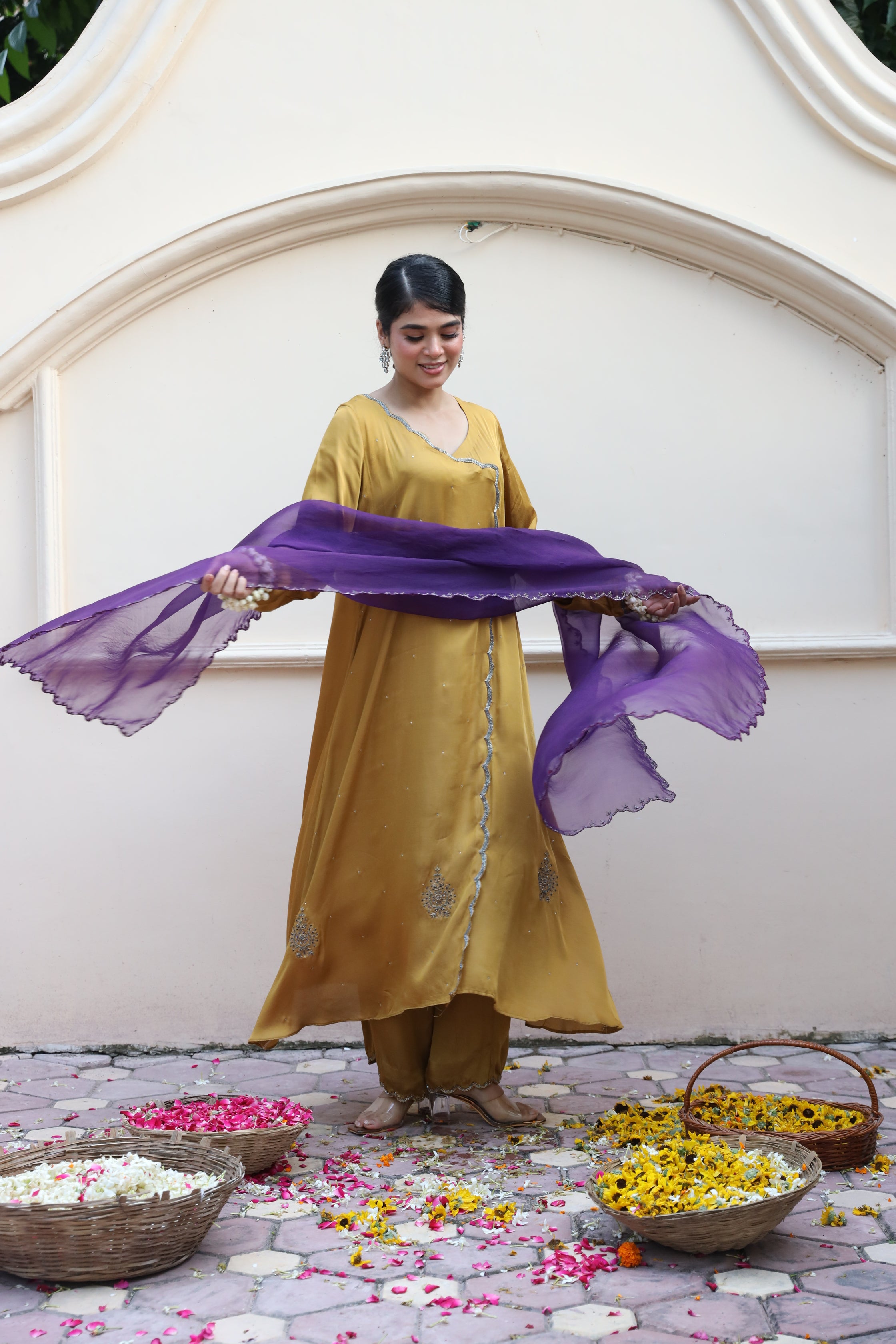 Mustard Kurta Set with Contrasting Purple Dupatta