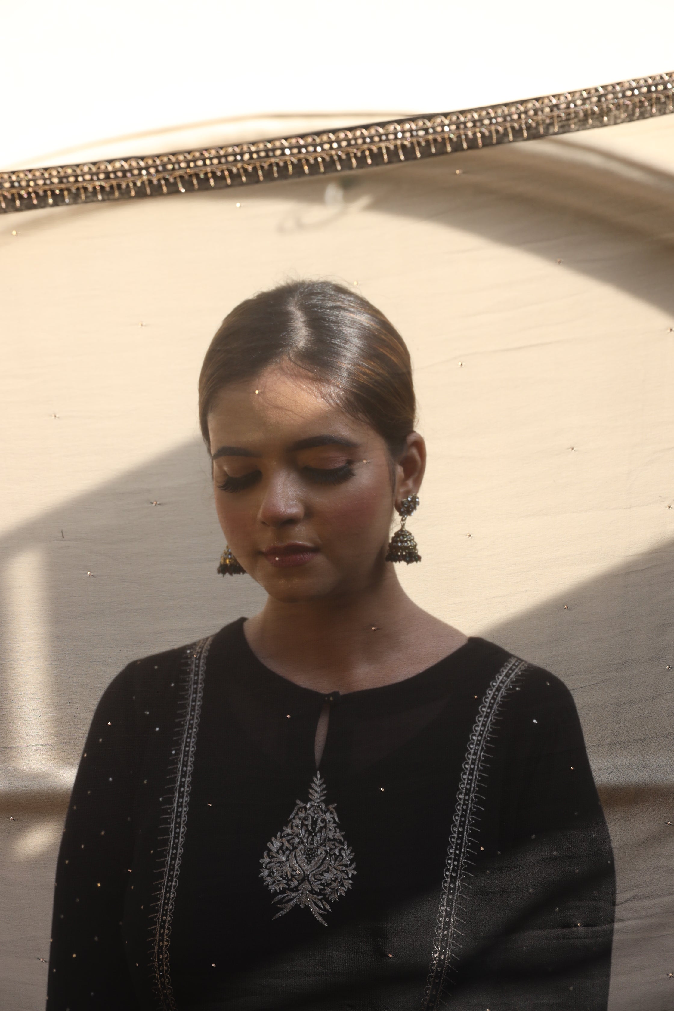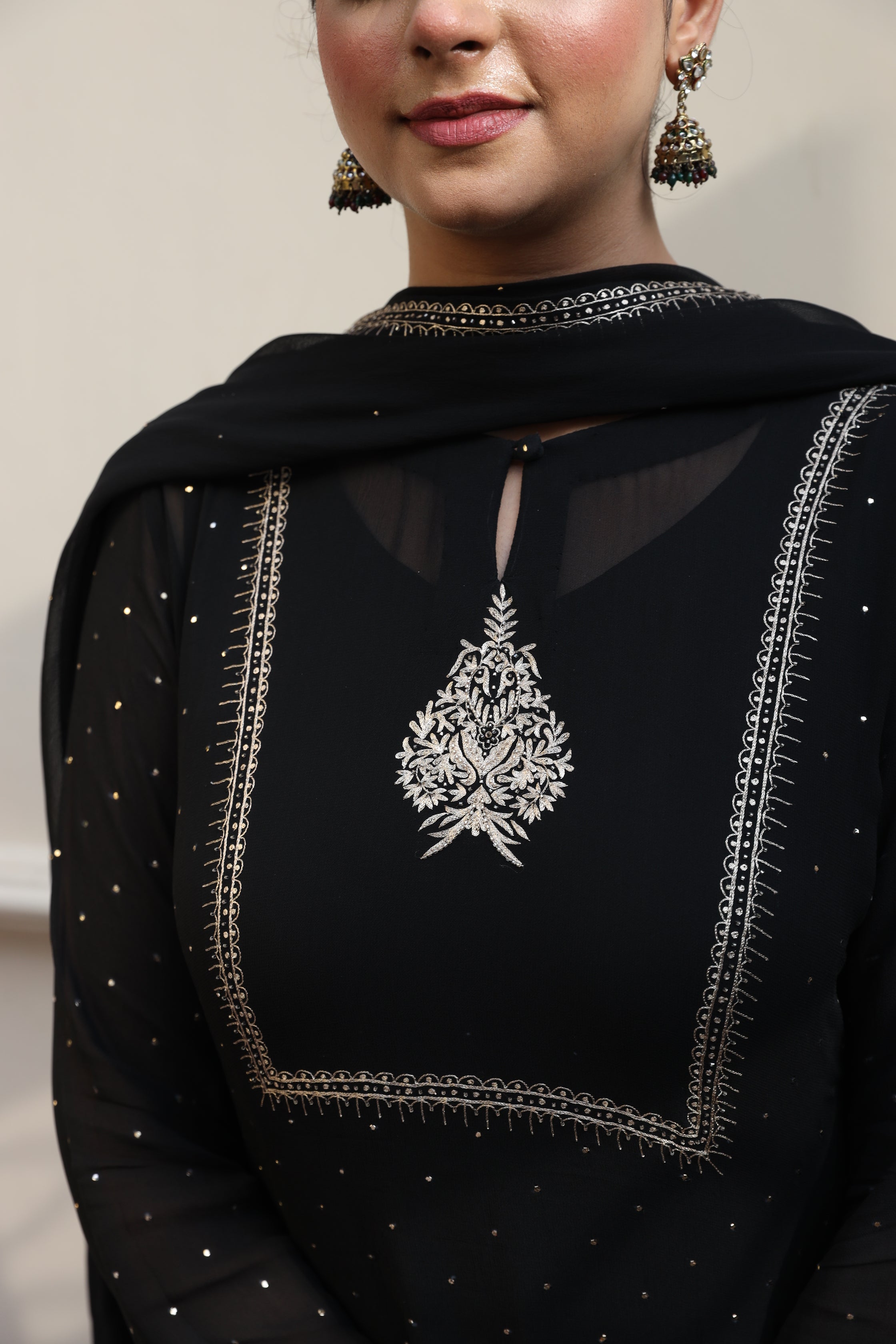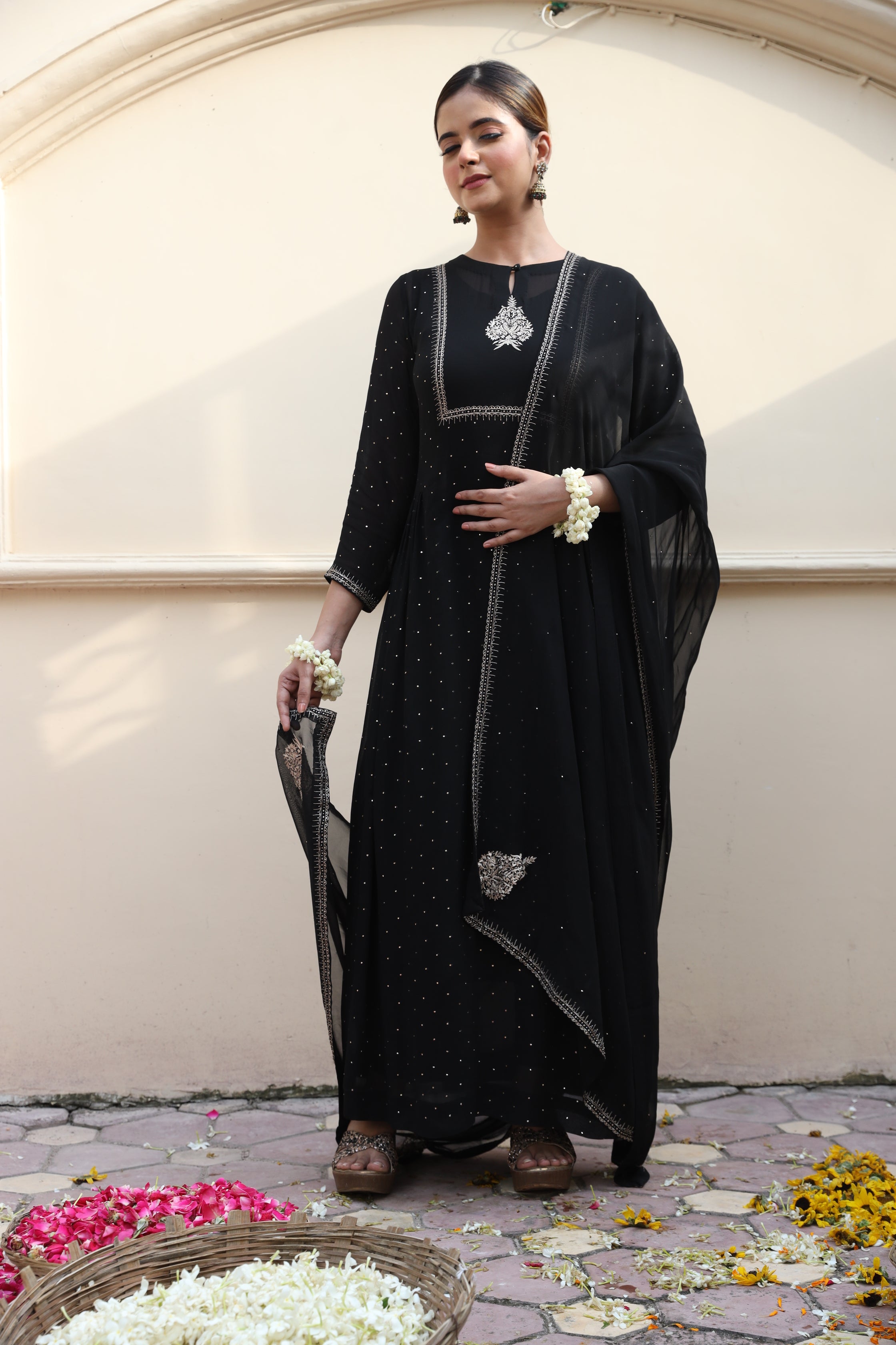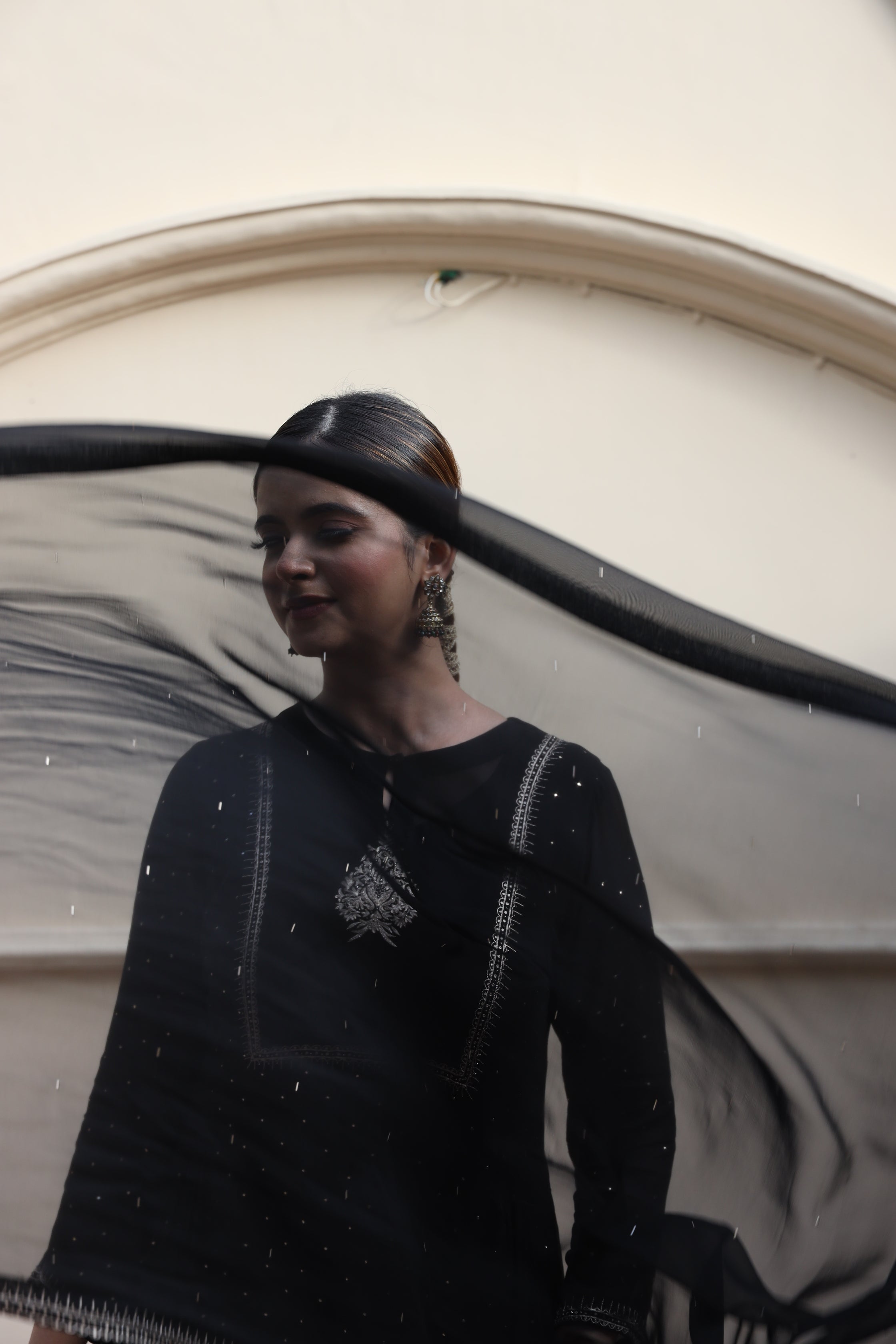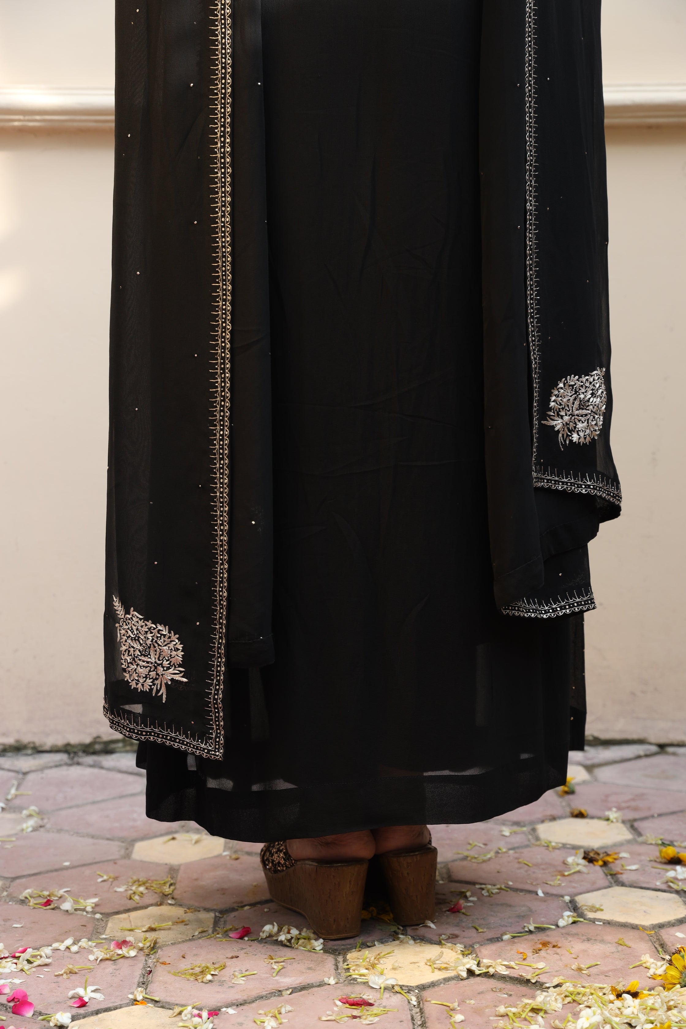 Black Kurta Set with Subtle Embellishments and Dupatta