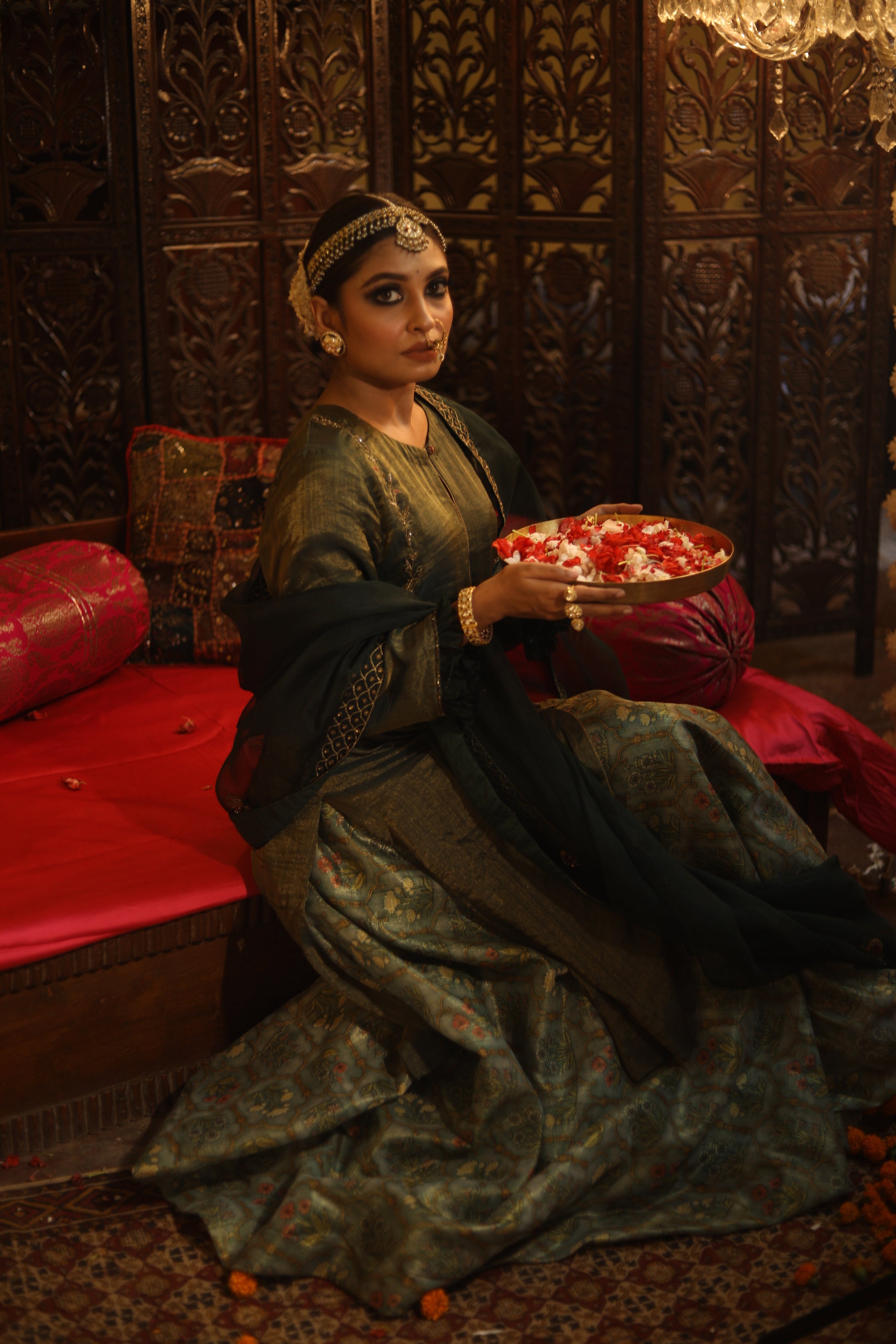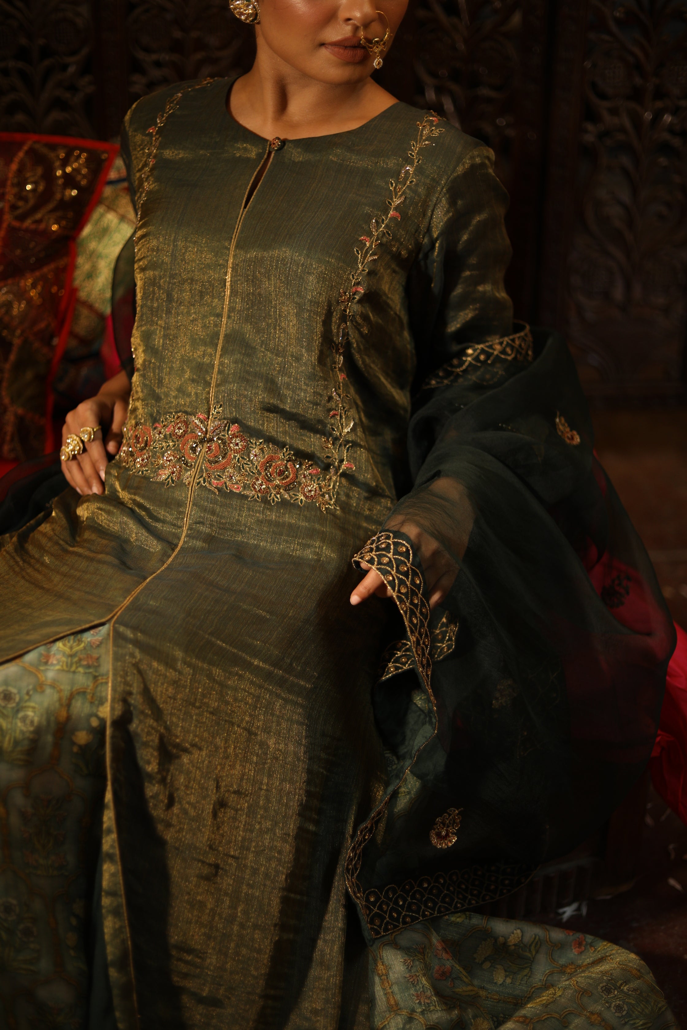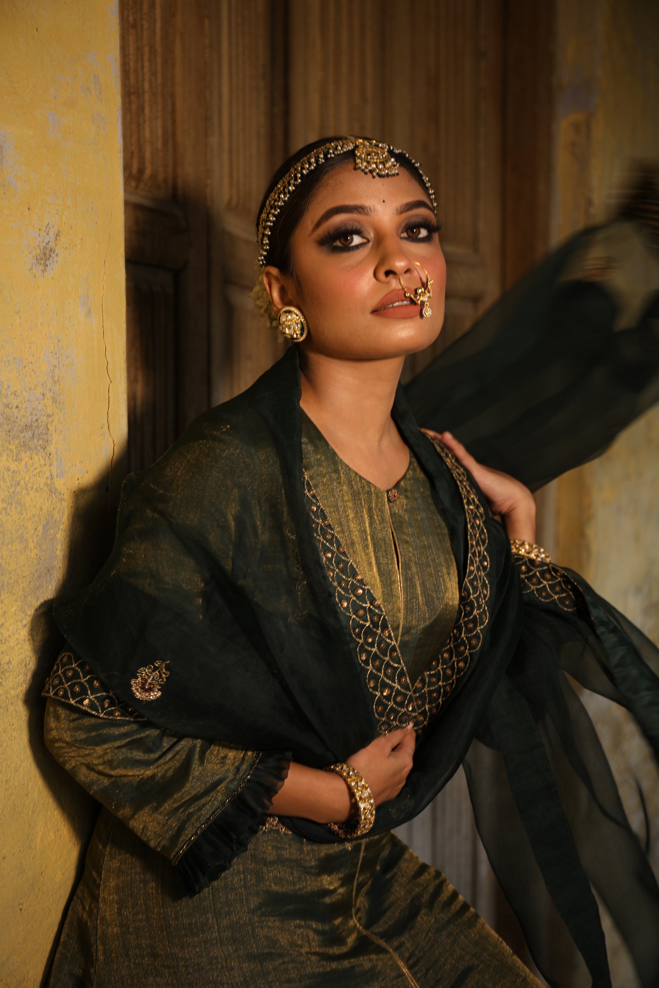 Kahi Green Kurta Set with Intricate Embroidered Dupatta