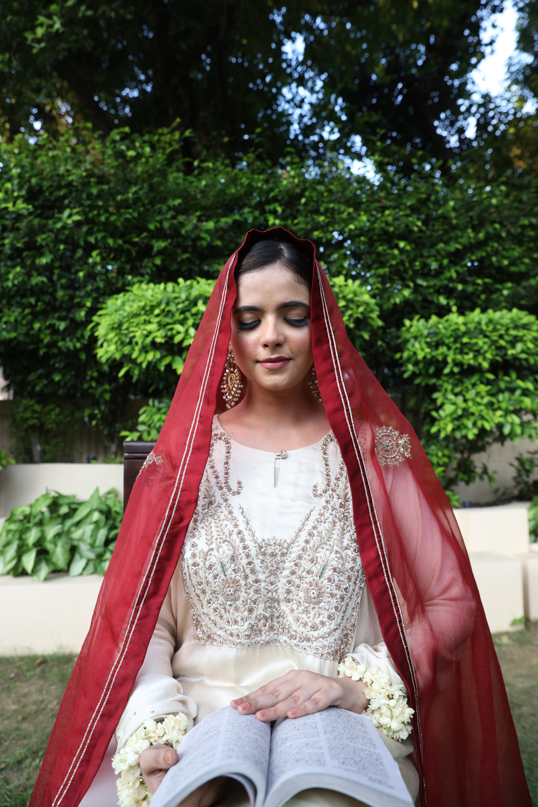 A refined 3-piece Satin and Organza set in Fawn and Maroon, hand-finished with detailed zardozi embroidery. A perfect balance of tradition and grandeur.