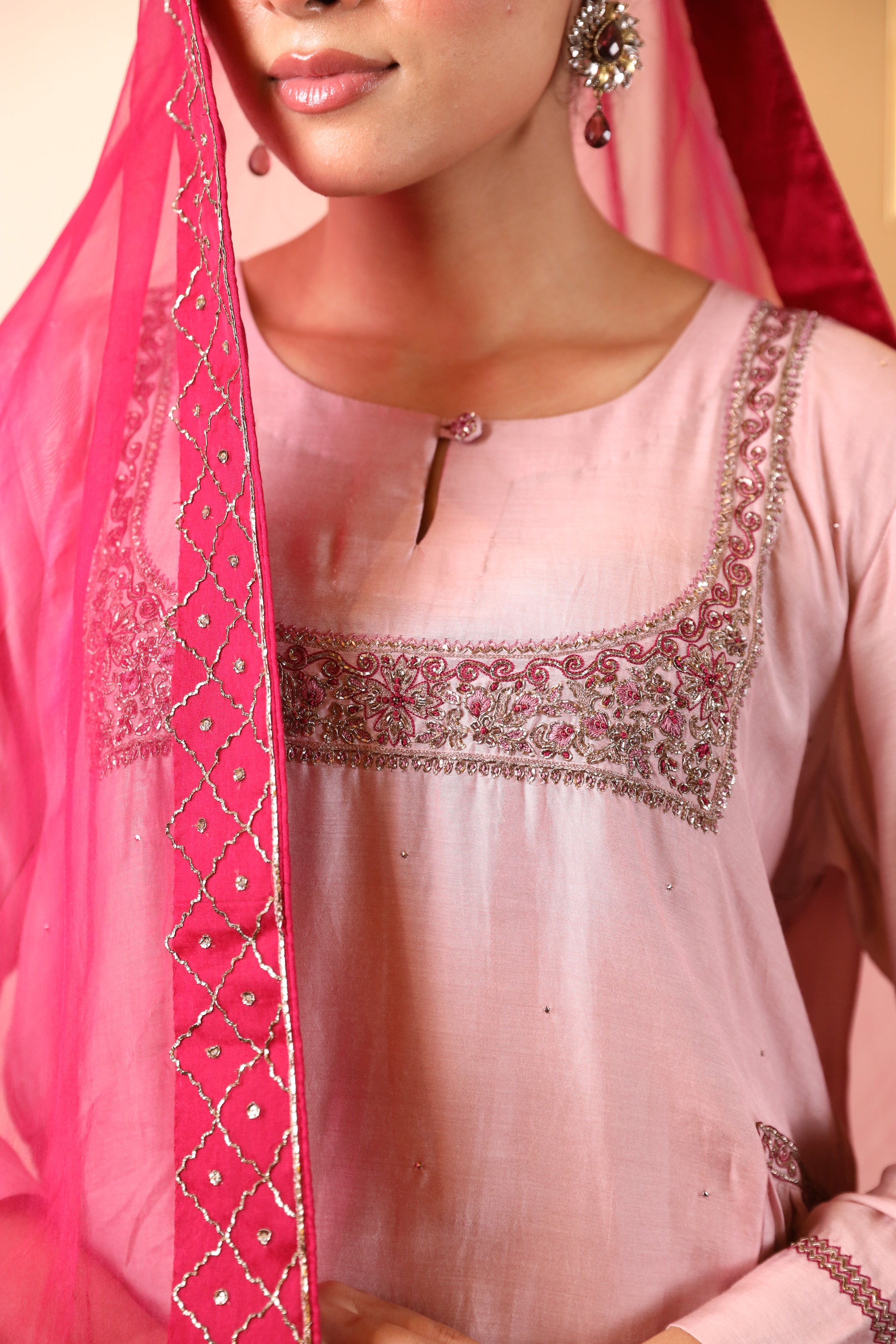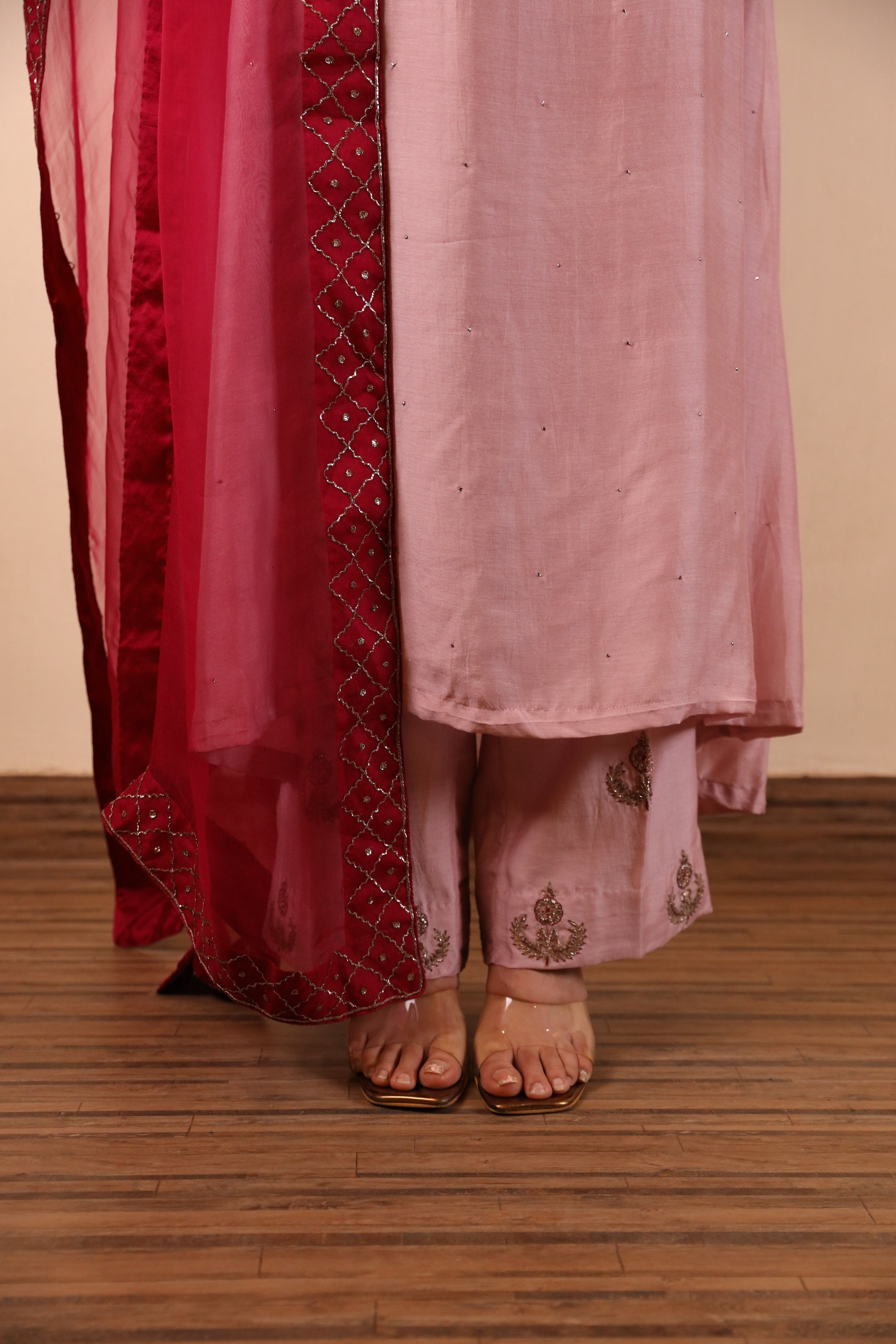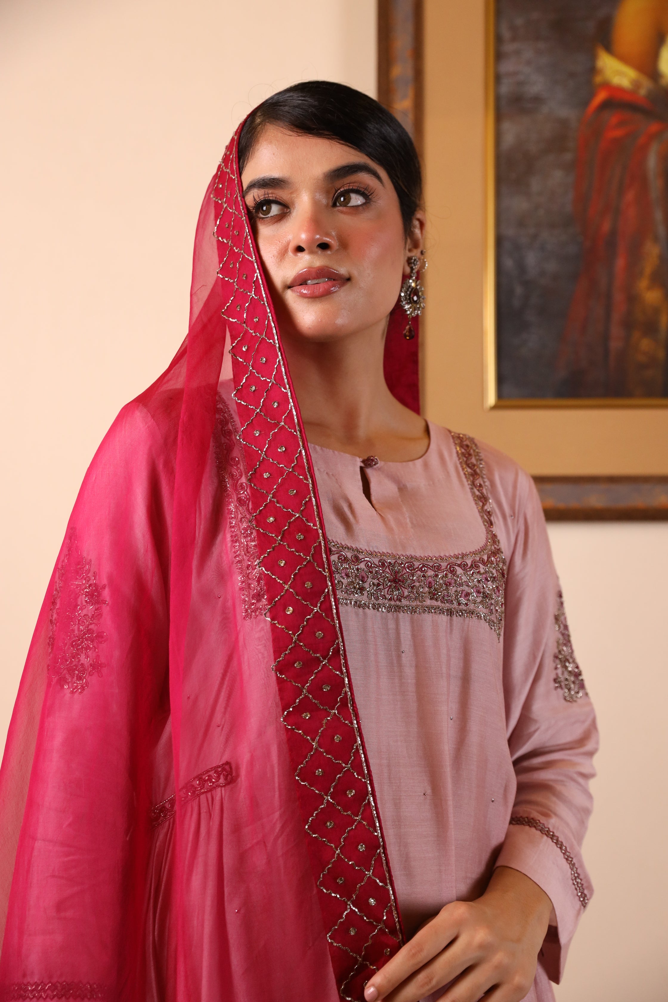 Mauvish Pink Kurta Set with Contrasting Rani Dupatta