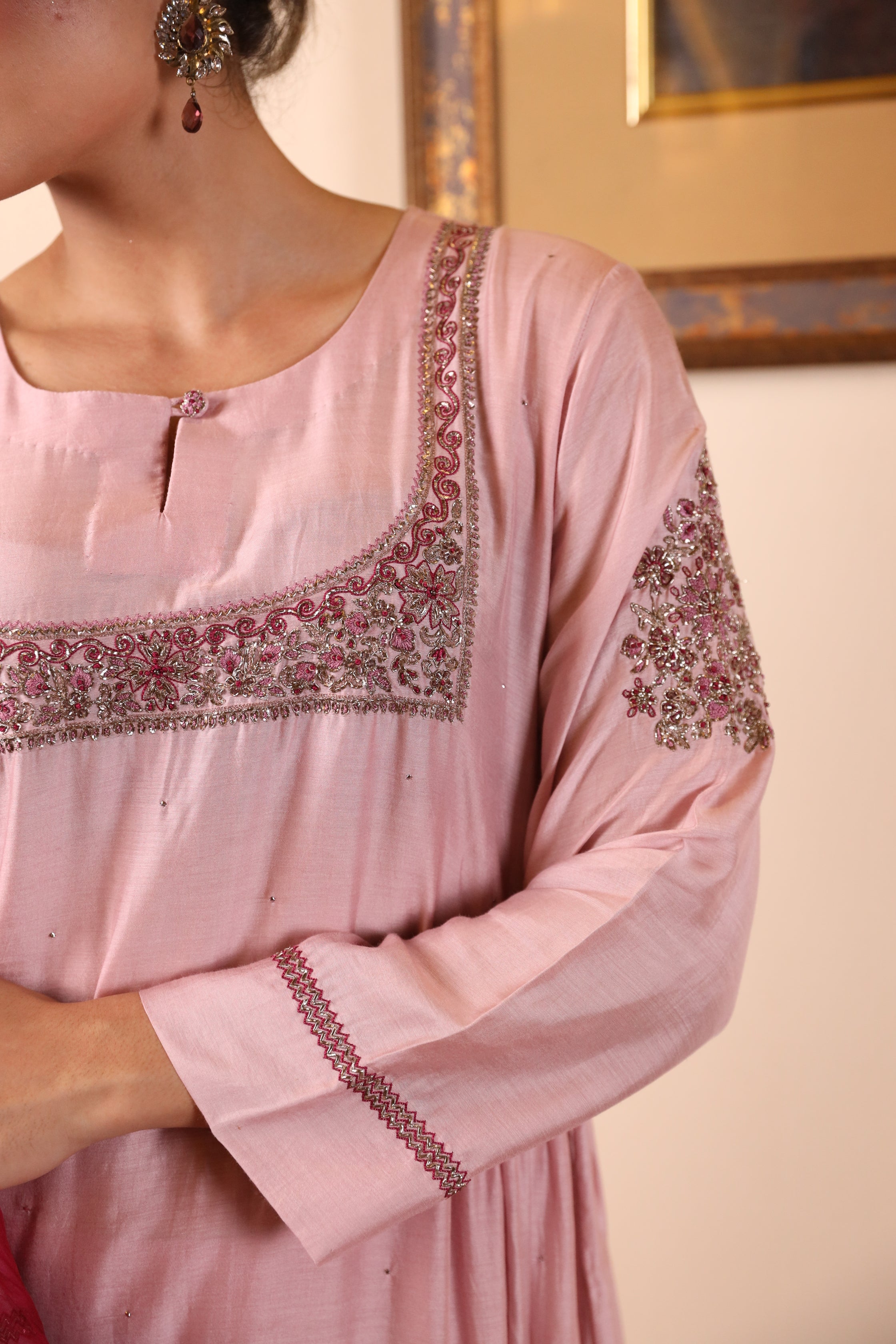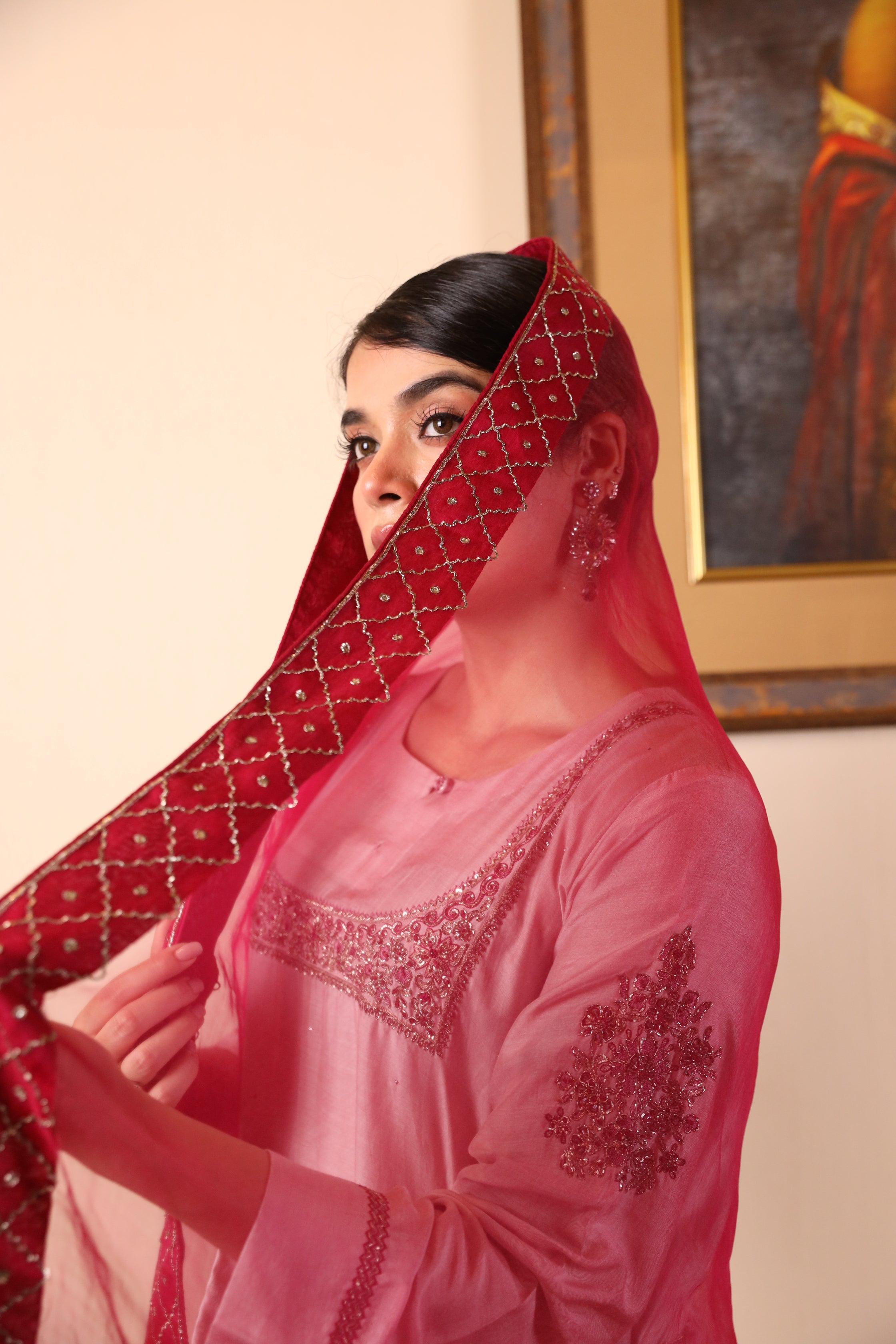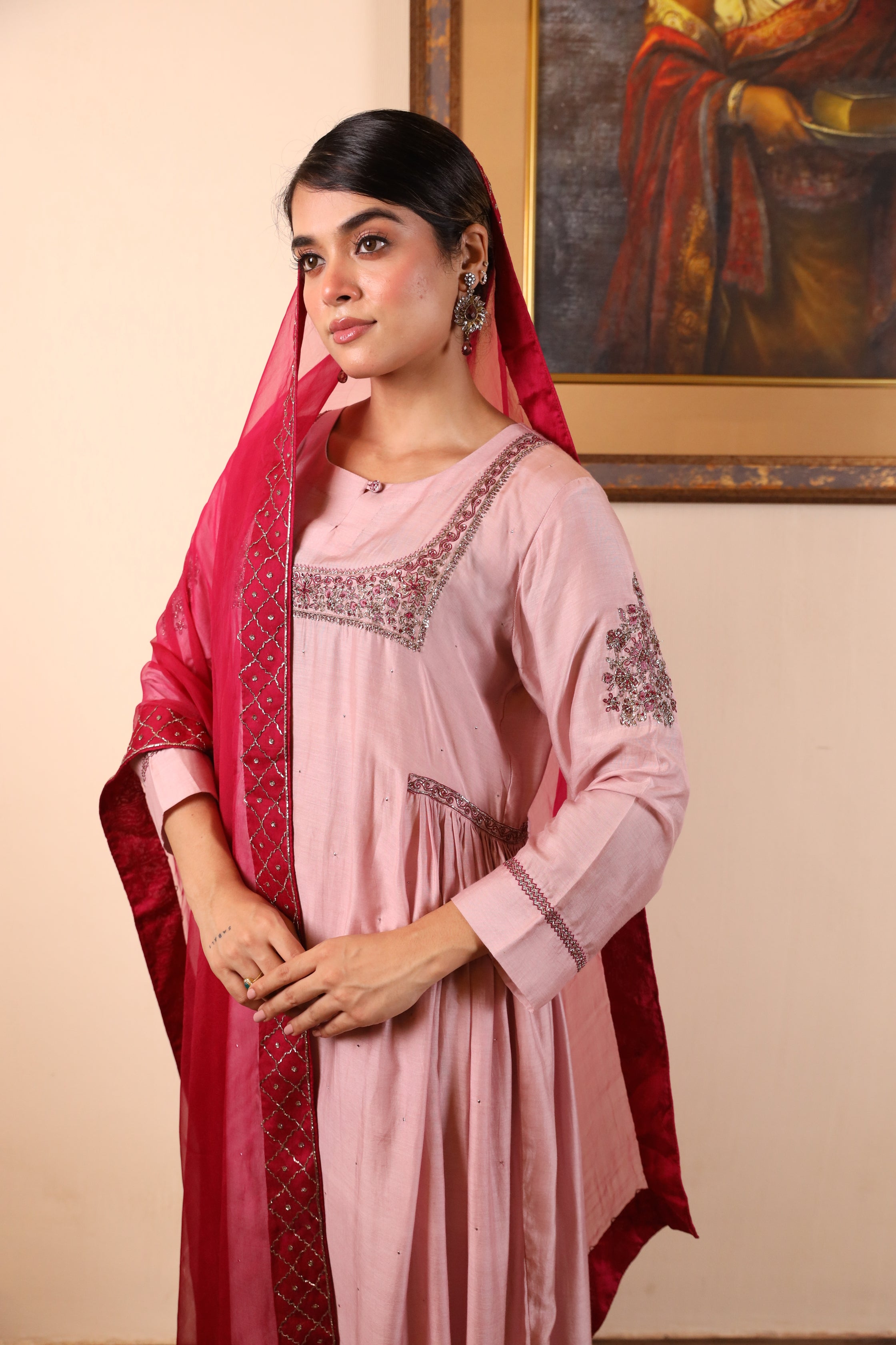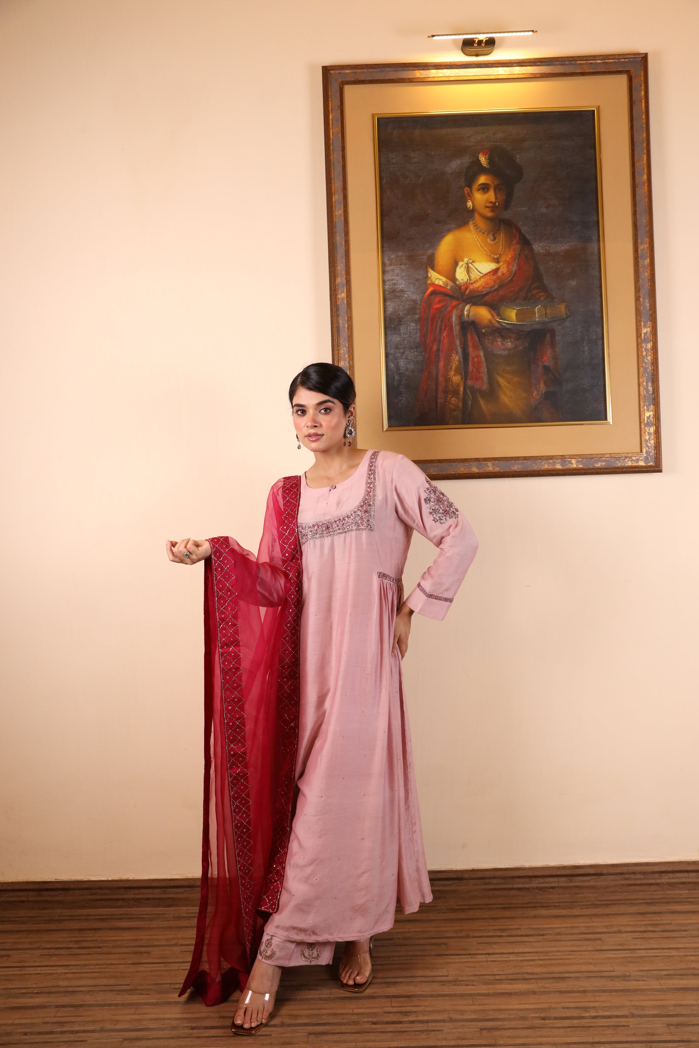 Mauvish Pink Kurta Set with Contrasting Rani Dupatta