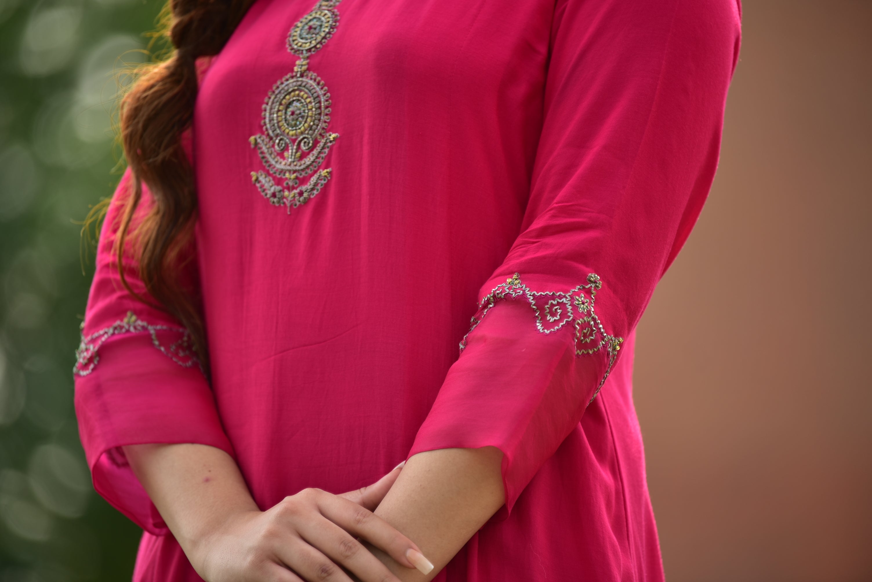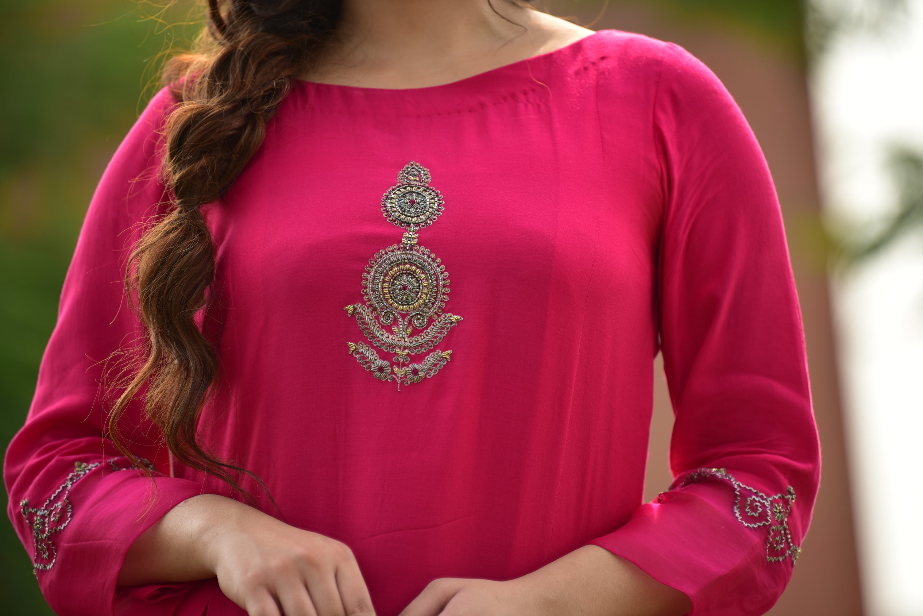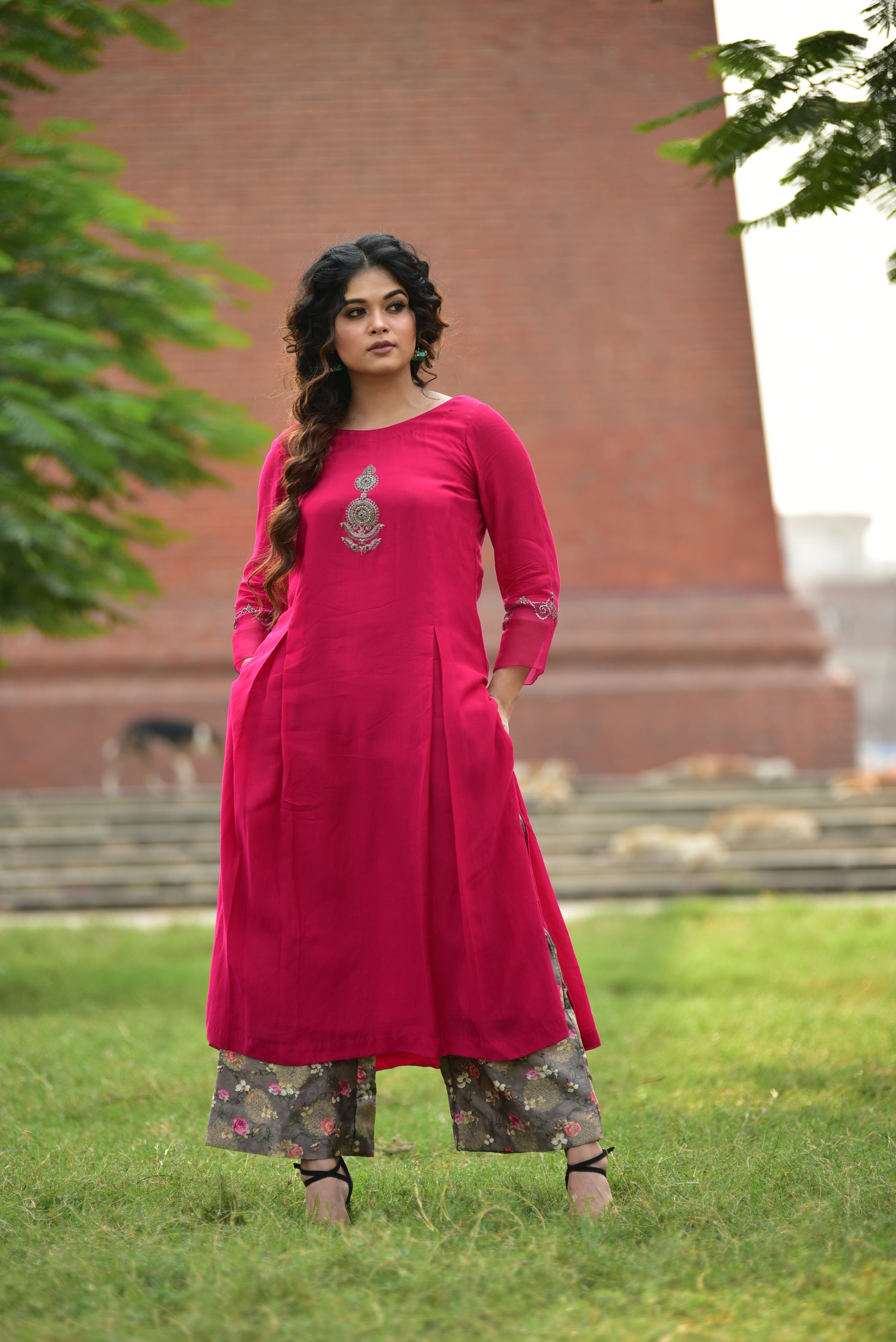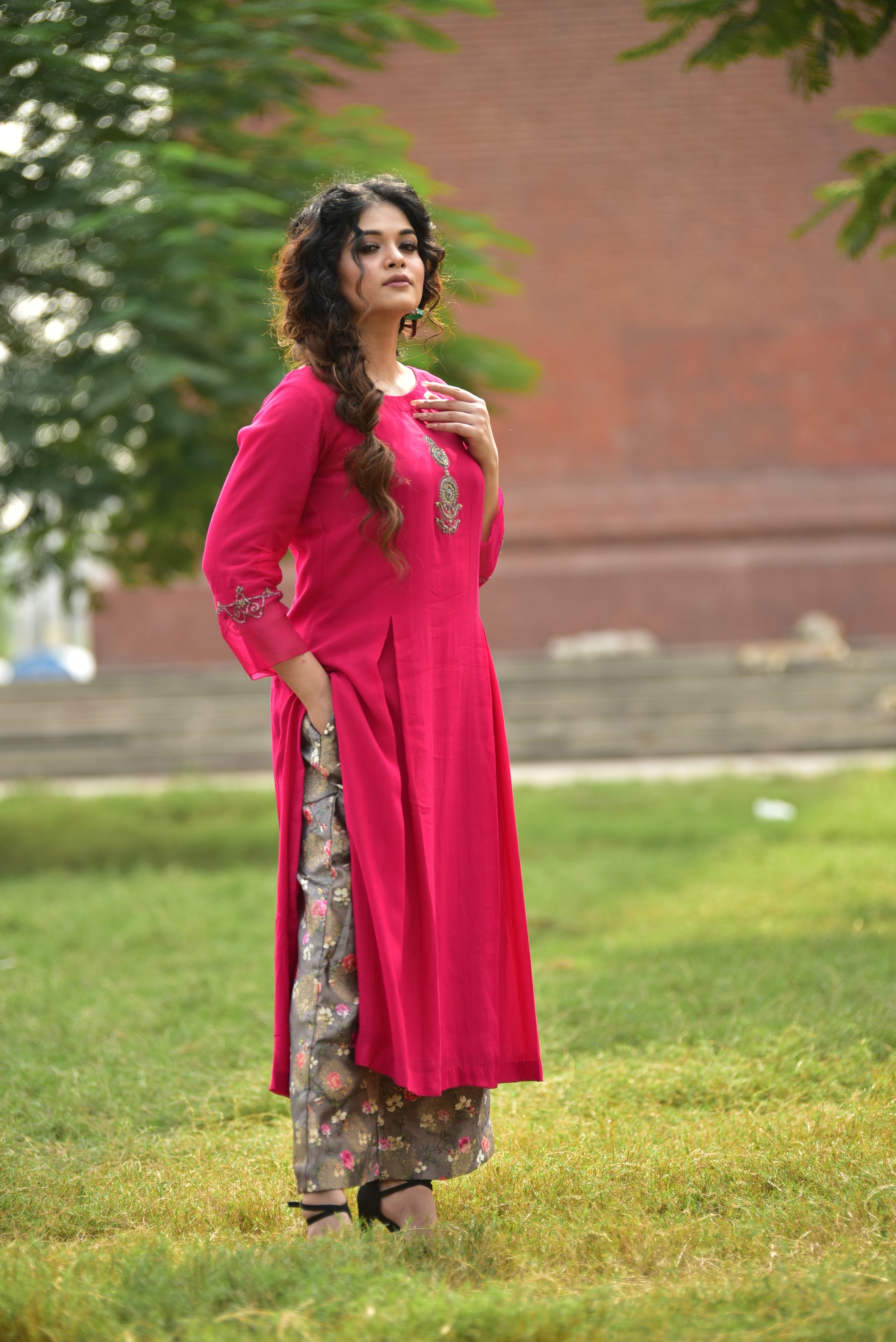 Hot Pink Kurta Set with Floral Pants